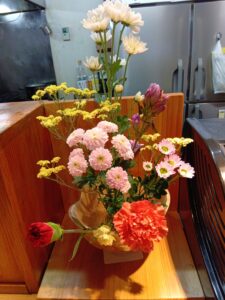 夏の間切り花を活けてもあの暑さですぐにだめになってしまったのでずっと鉢植えを置いていましたが随分と涼しくなってきたので愚母が花を活けました。